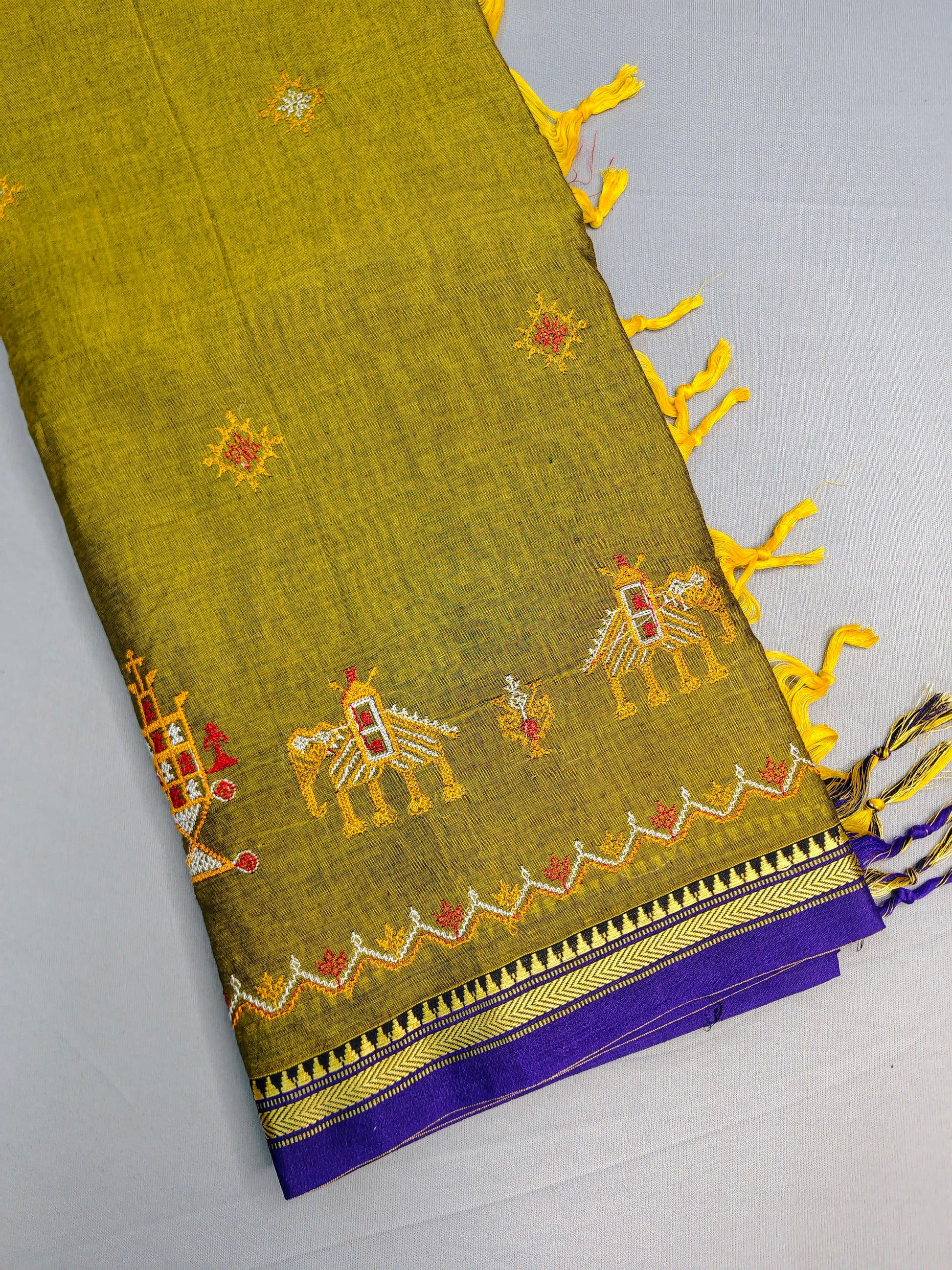 Mehandi Green Kasuti Embroidered Narayanapet Pure Cotton saree
