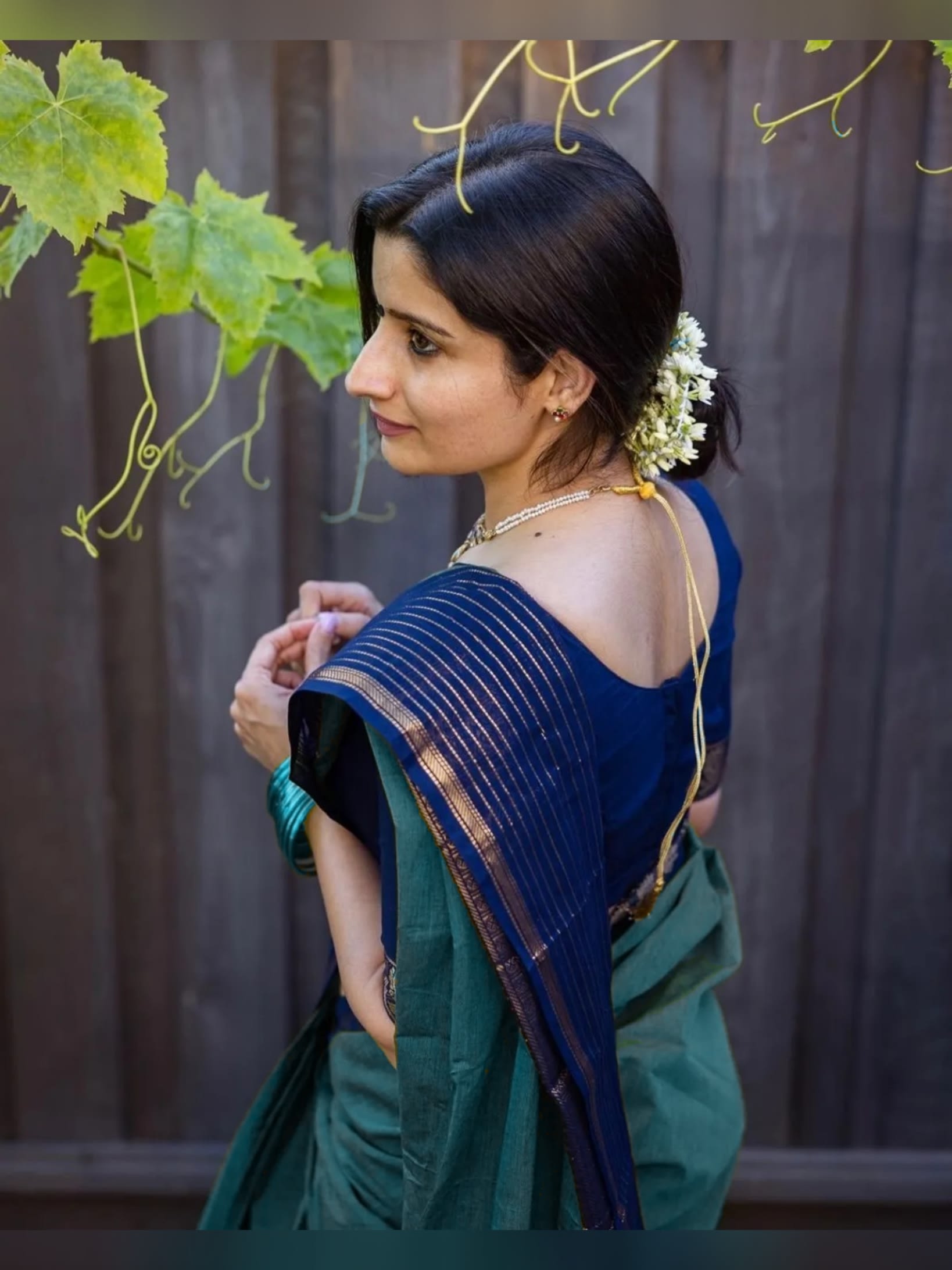 Keep the styling minimal with soft makeup and effortless hair to let the saree remain the highlight of your Mehendi or festive look.