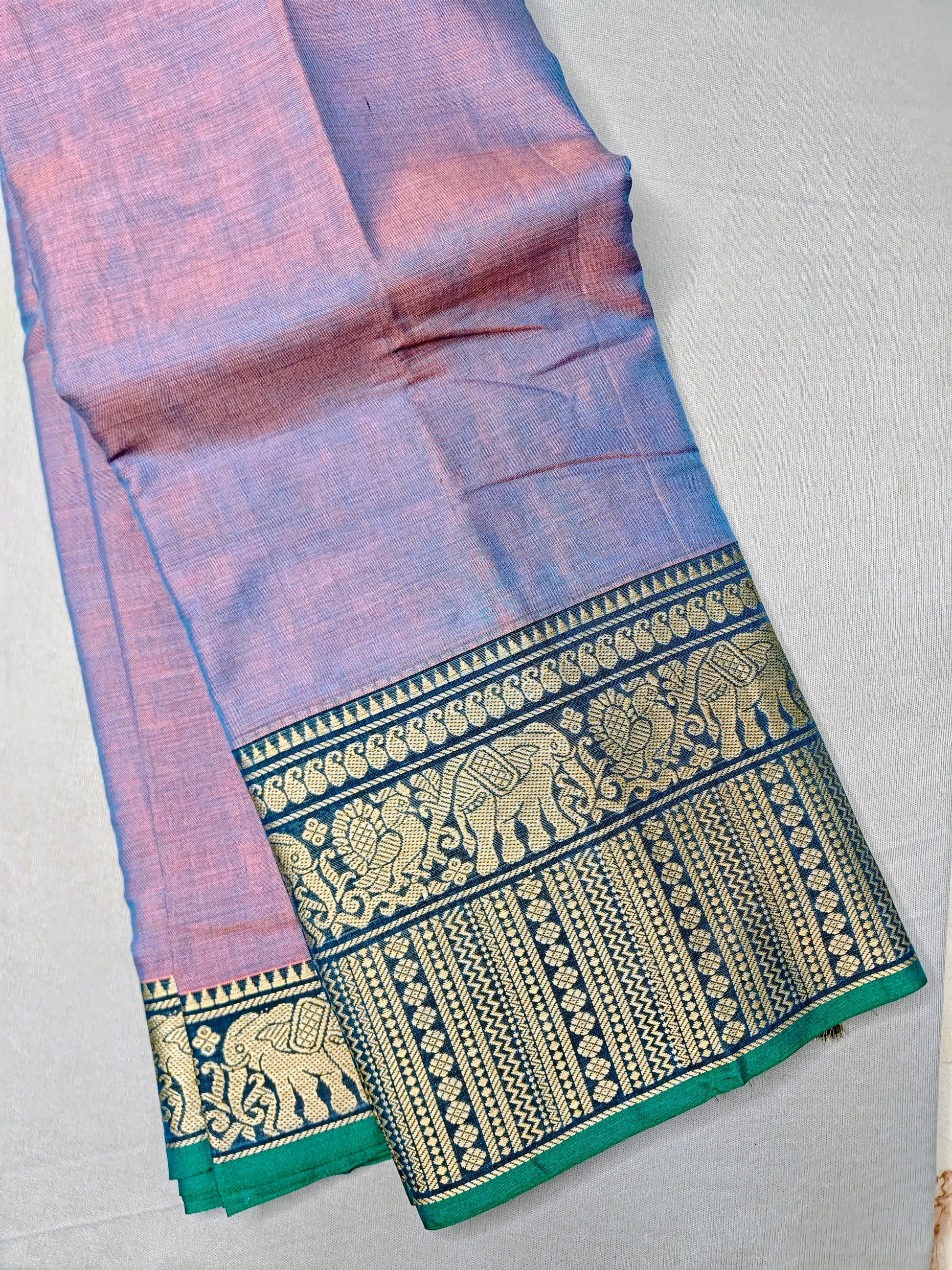 Dual Tone Bluish Grey Single Elephant Narayanpet Pure Cotton Saree with running blouse piece(Same as saree)