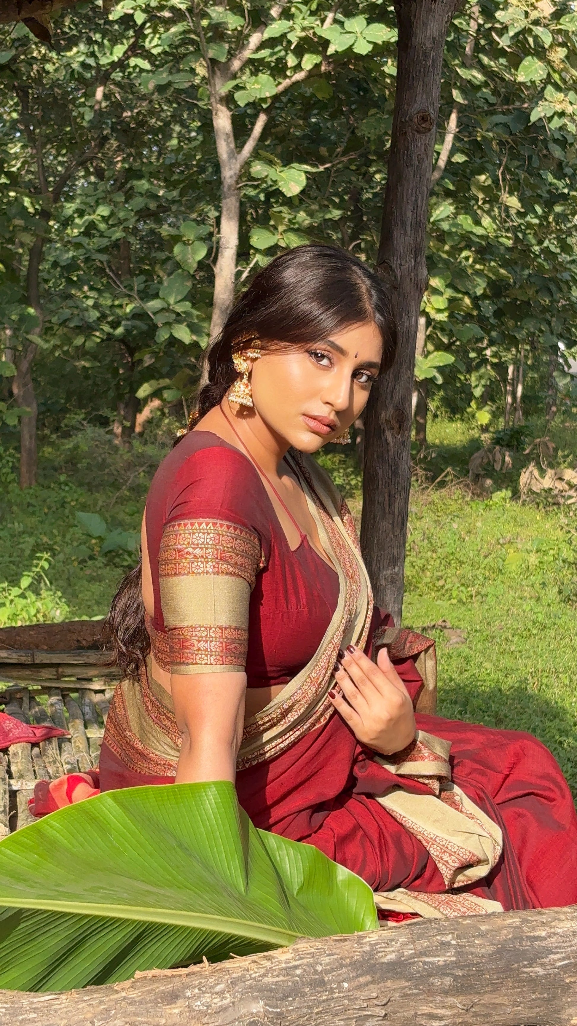 Keep the styling minimal with soft makeup and effortless hair to let the saree remain the highlight of your Mehendi or festive look.