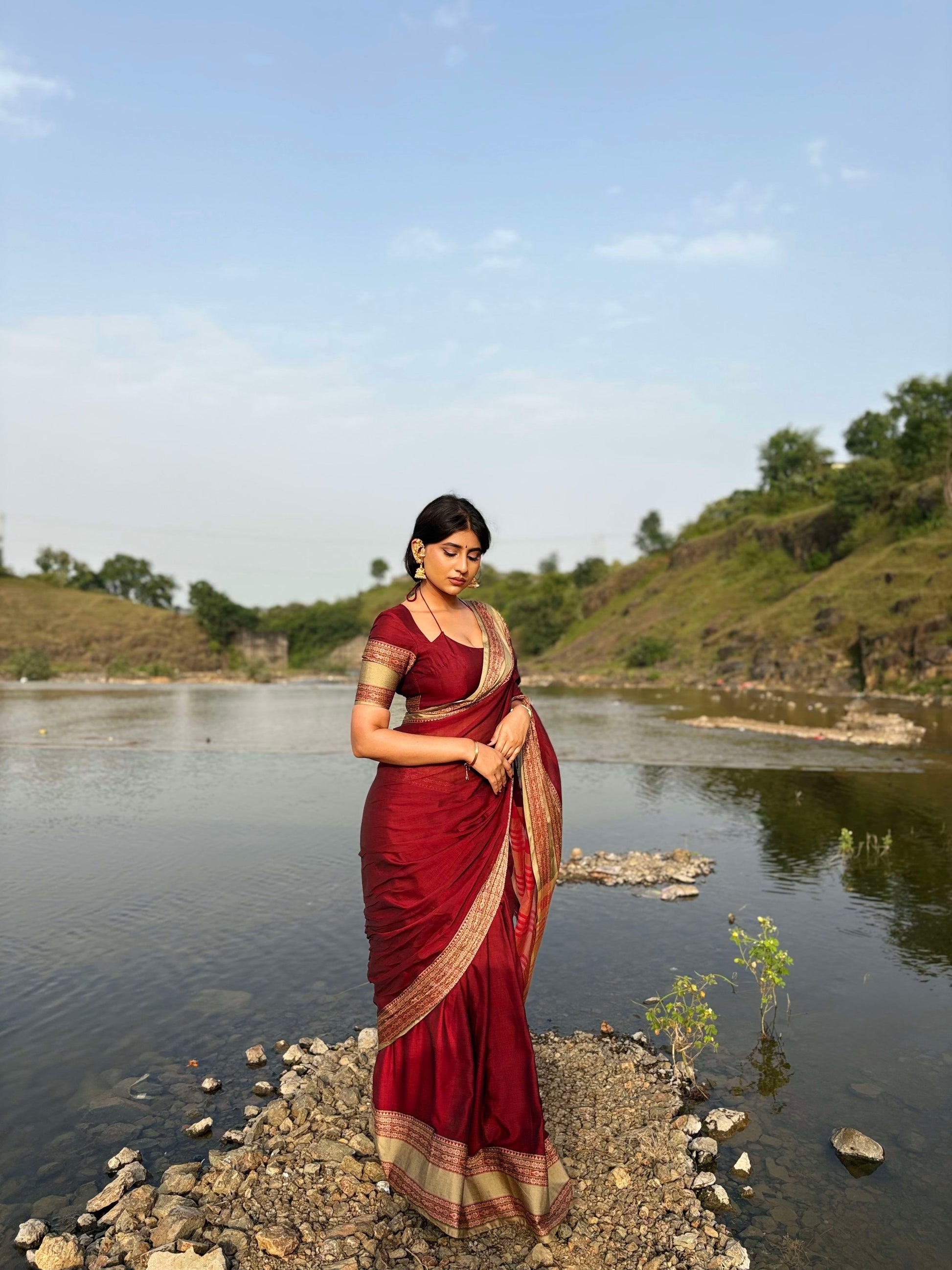 ★ 4.9 | 643 65% OFFAshwini Brick Red Narayanpeth Pure cotton saree