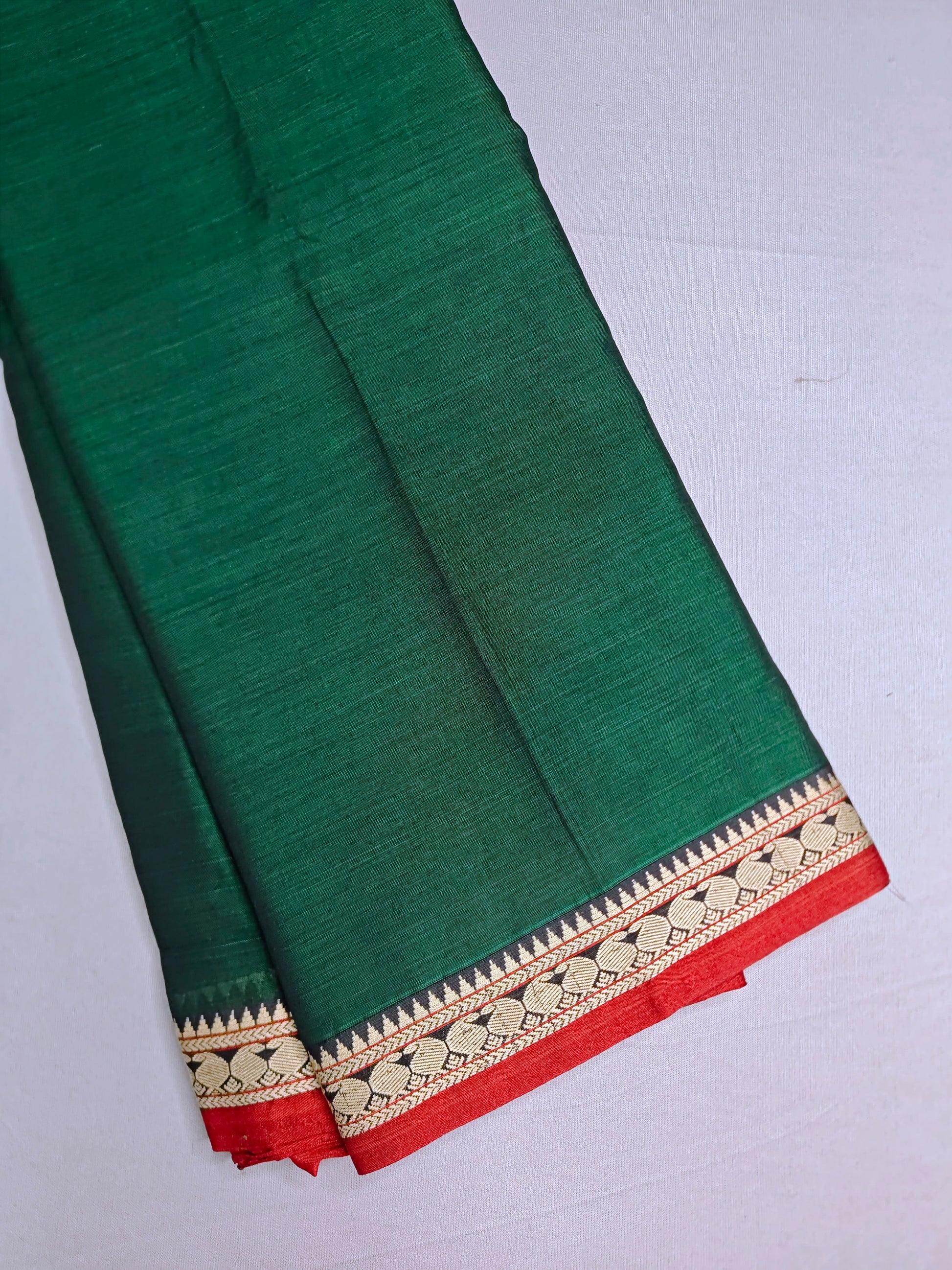 Tanushri Bottle Green Narayanpet Pure Handloom Cotton Saree with Running blouse piece