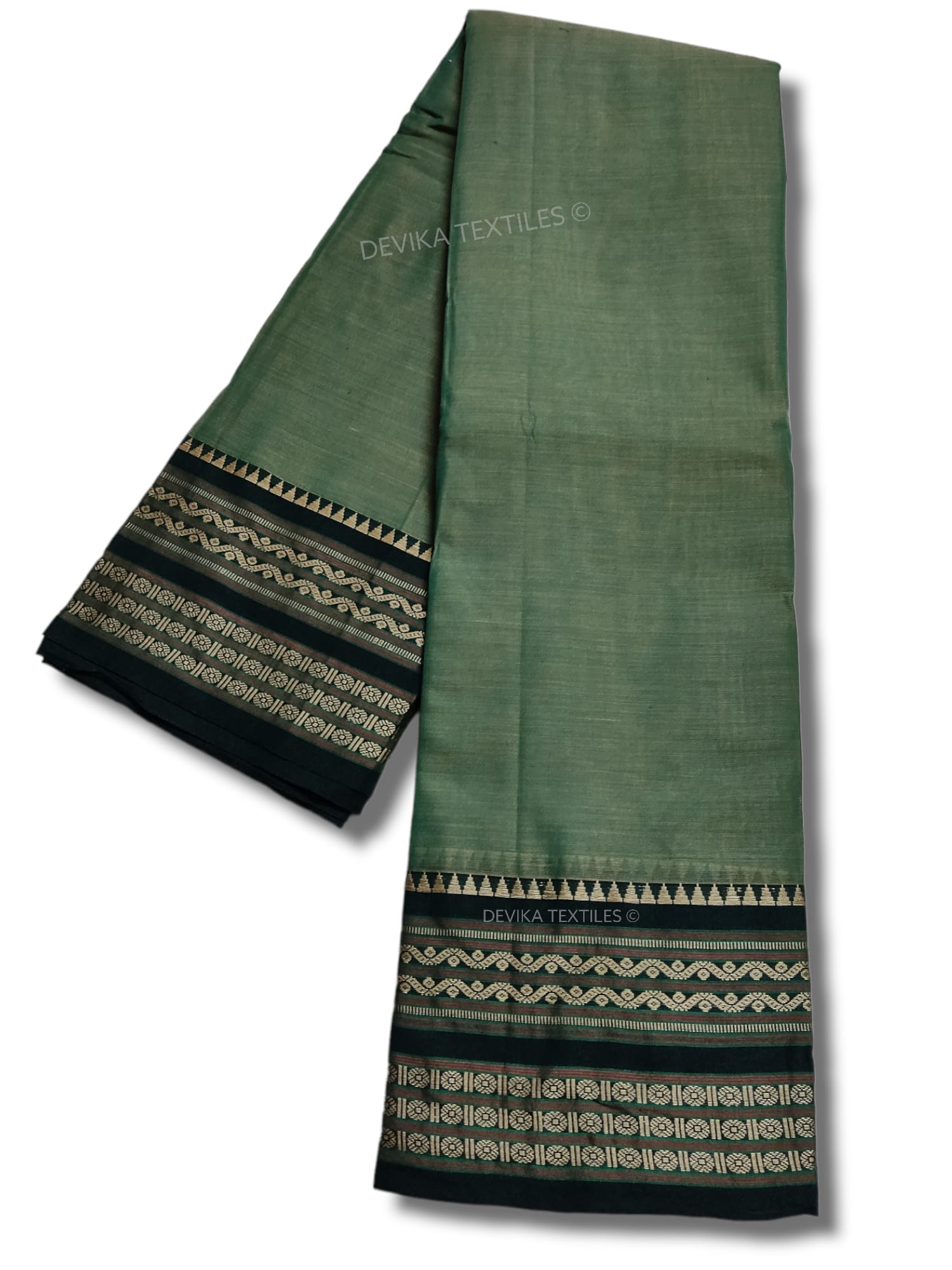 Pista Orissa Border Narayanpet Pure Handloom Cotton Sarees with Running blouse piece