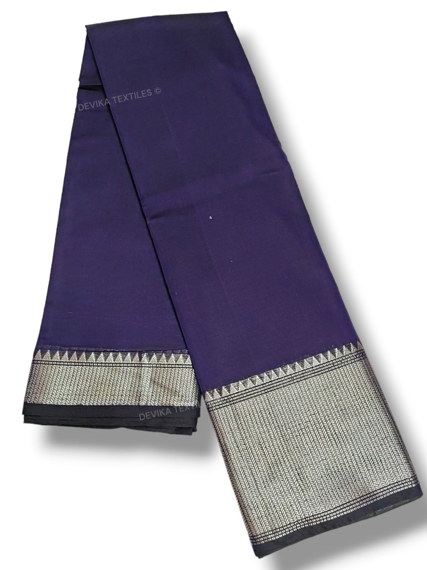 Voilet Sahitya Silver Jari Border Narayanpet Pure Cotton saree with Running blouse piece