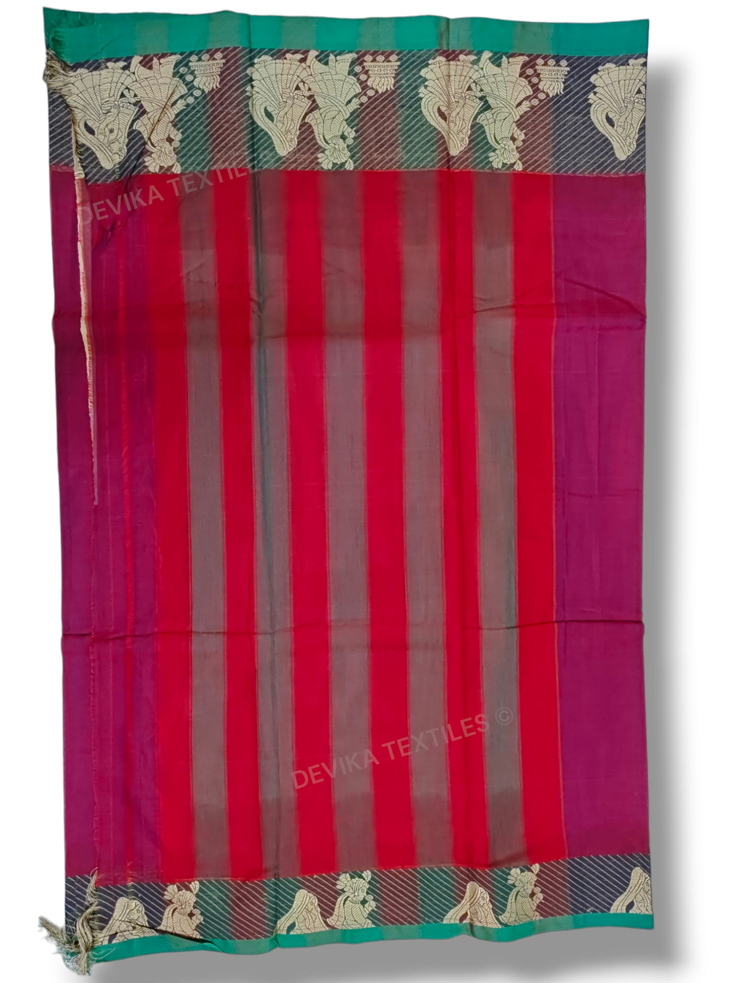 ★ 4.9 | 451 65% OFFRed Peacock Border Narayanpet Pure Handloom Cotton Sarees (Red by Green)