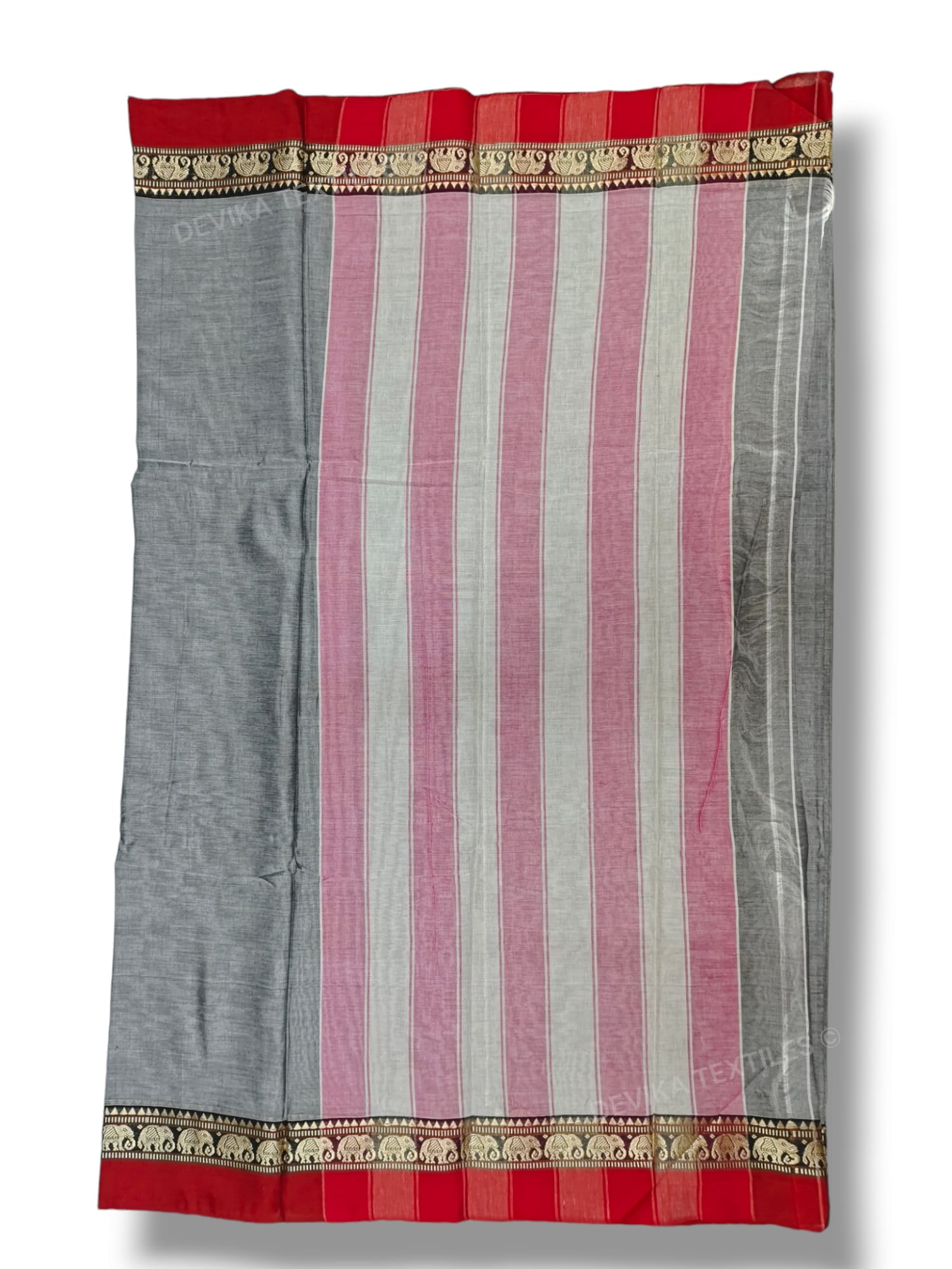 Grey Elephant Border Narayanapet Pure Cotton saree with running blouse piece (same as saree)