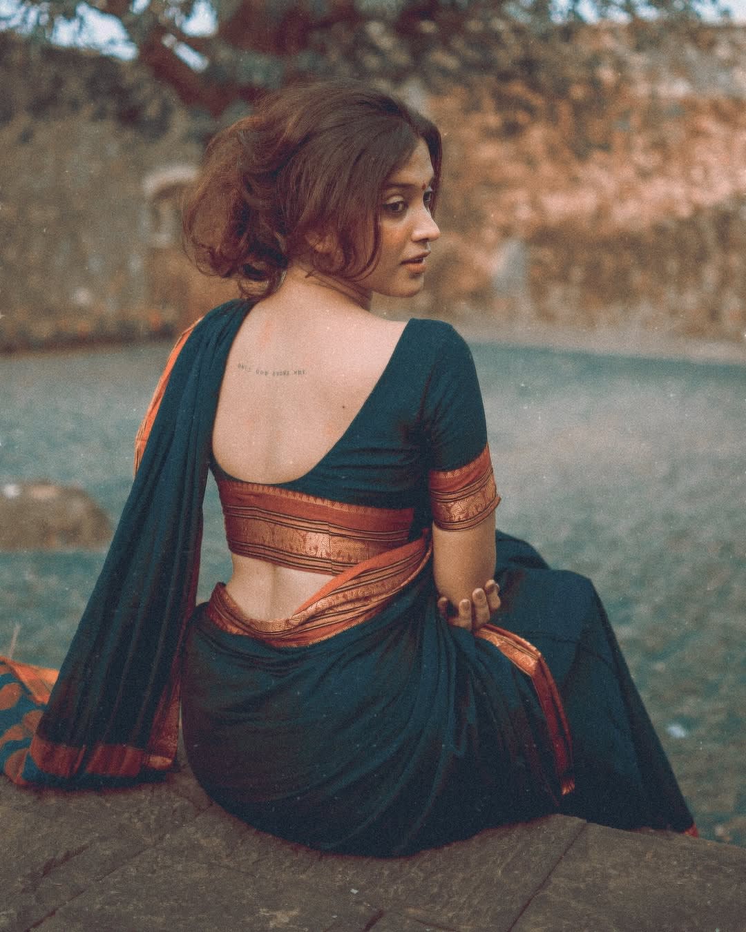 Keep the styling minimal with soft makeup and effortless hair to let the saree remain the highlight of your Mehendi or festive look.