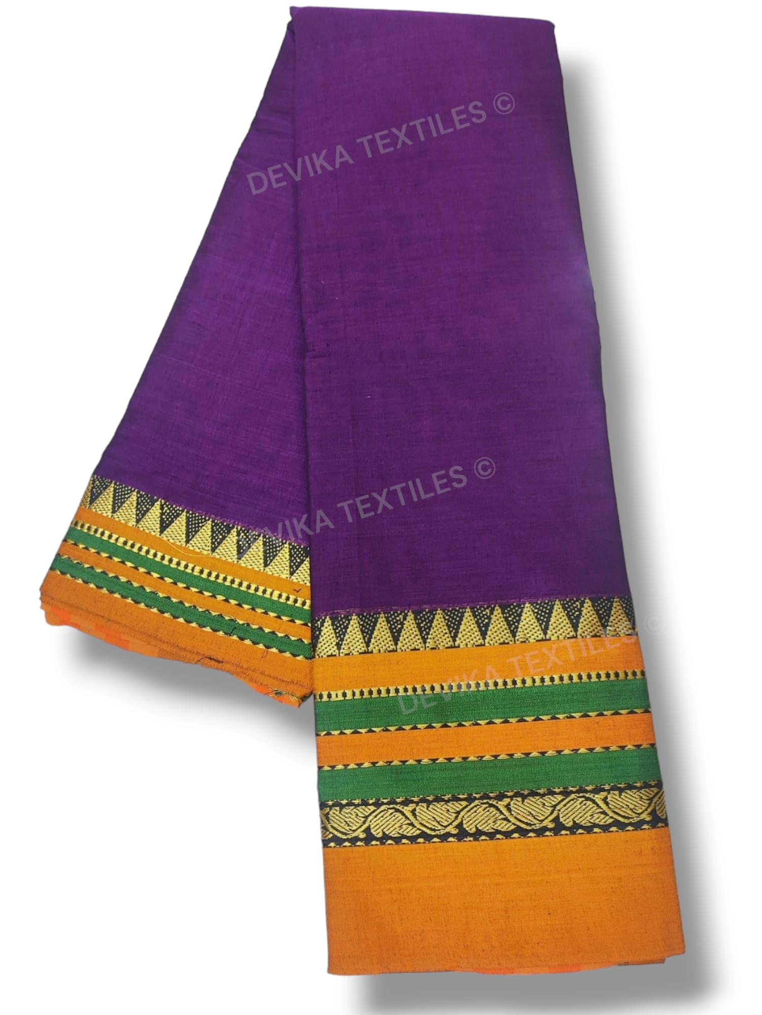 Voilet Sahitya Silver Jari Border Narayanpet Pure Cotton saree with Running blouse piece