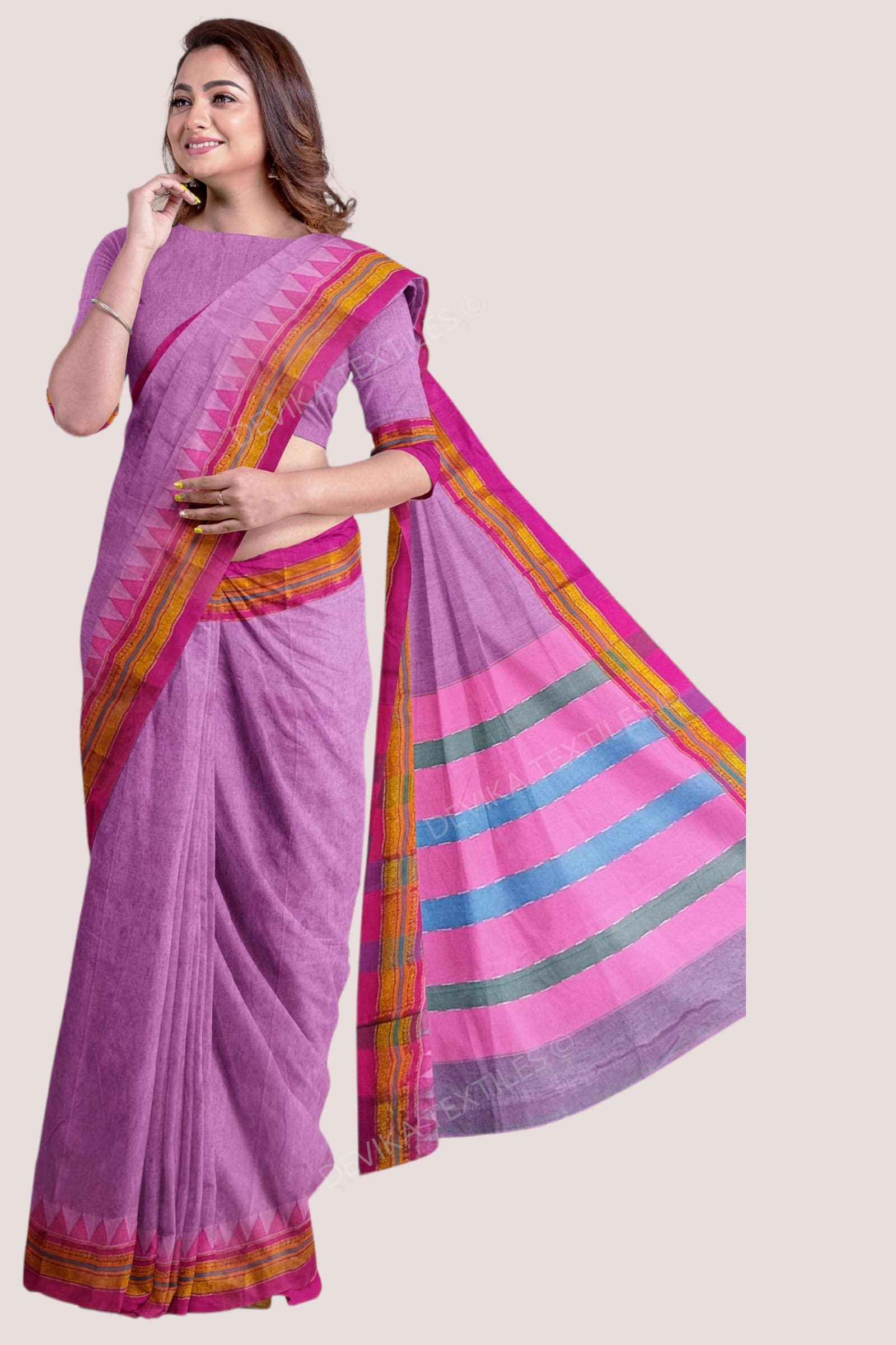 Dhanashir Rani pink Narayanpeth Pure cotton saree with Running blouse piece (Same as body)