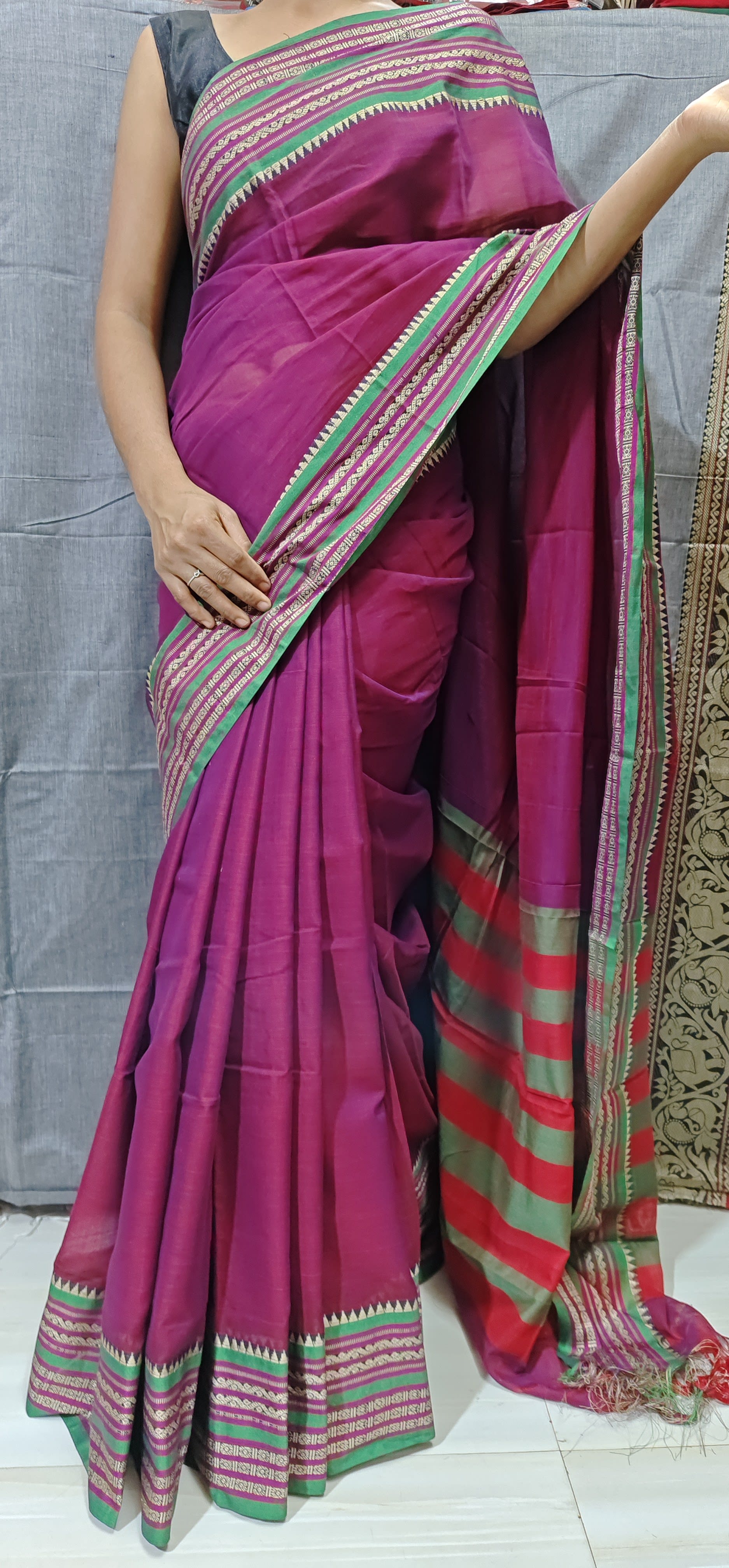 Magenta Orissa Pattern Narayanpeth Pure Cotton saree