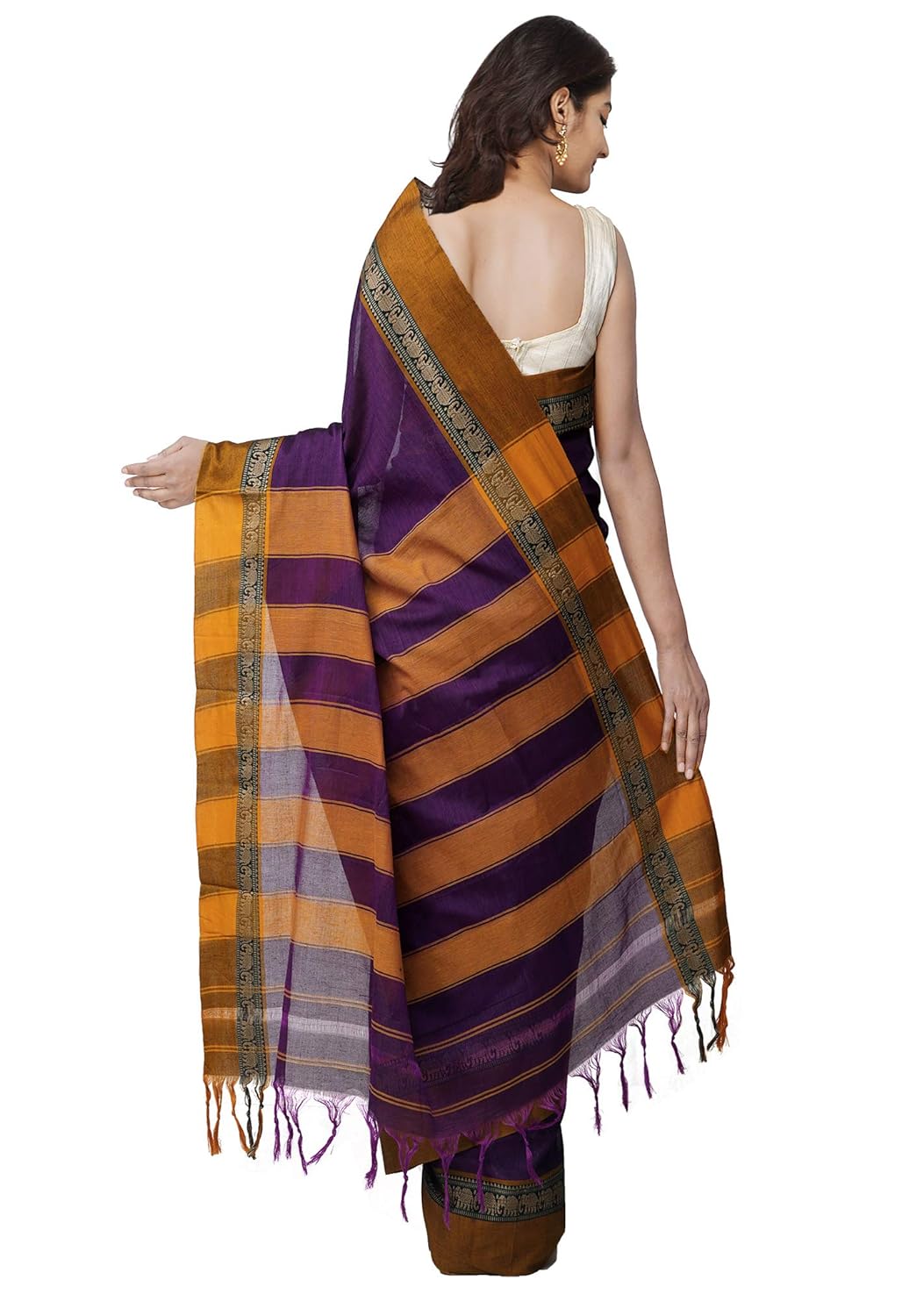 Narayanpet Handloom Cotton Saree With Blouse Piece (Purple+Free Size) For Women