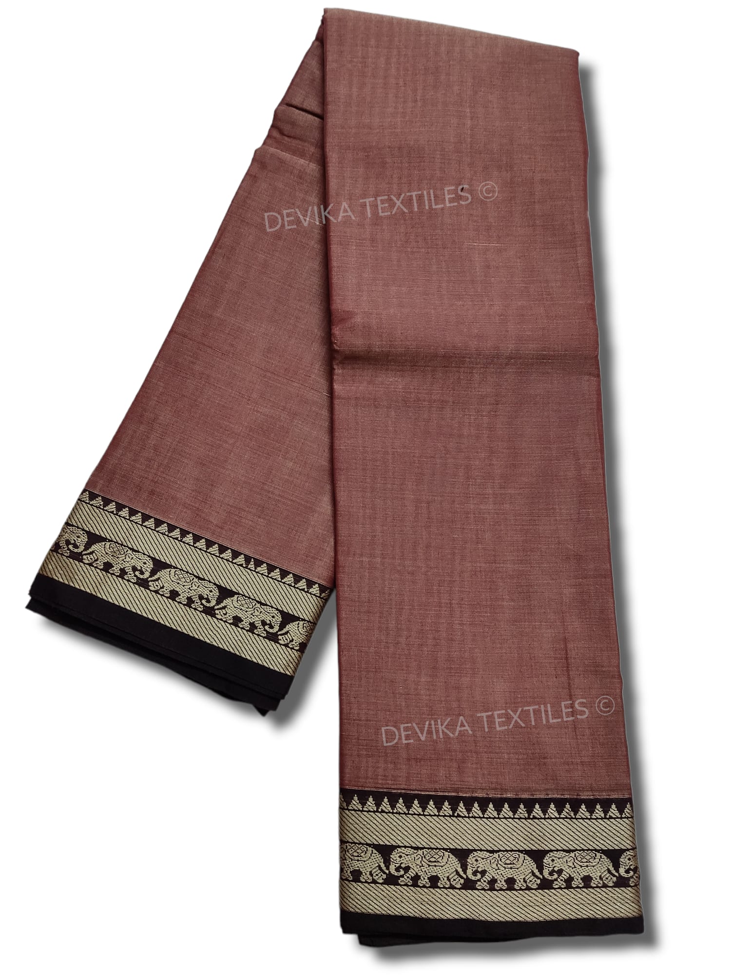 Brick Red elephant thread border narayanpet cotton sarees with running blouse piece