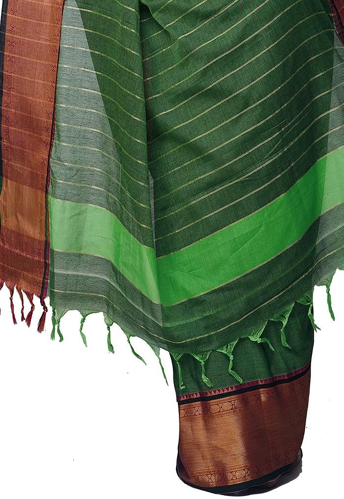 ★ 4.9 | 573 65% OFFBottle Green Narayanpet Cotton saree with Running blouse piece (Green by yellow)